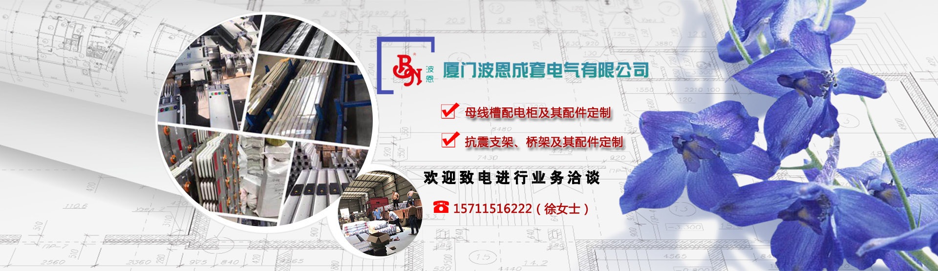 廈門波恩成套電氣有限公司是國內(nèi)專業(yè)從事母線槽、電纜橋架、滑觸線、配電柜等系列產(chǎn)品科研、生產(chǎn)和技術(shù)服務(wù)的企業(yè)。公司地處旅游城市——廈門,風(fēng)景優(yōu)美,交通便利。公司專注于母線槽、抗震支吊架以及橋架產(chǎn)品的研發(fā),設(shè)計(jì),生產(chǎn),銷售和服務(wù)的現(xiàn)代化企業(yè)。公司致力于新型配電技術(shù)研發(fā)與新工藝產(chǎn)品制造,為客戶提供突破性的配電一體化解決方案,以優(yōu)異的產(chǎn)品品質(zhì),為數(shù)百家包括有關(guān)部門/機(jī)關(guān)、醫(yī)院、學(xué)校、酒店、寫字樓、商業(yè)中心,工礦企業(yè)等不同領(lǐng)域的客戶提供服務(wù),并得到認(rèn)可和信賴。